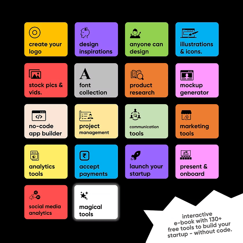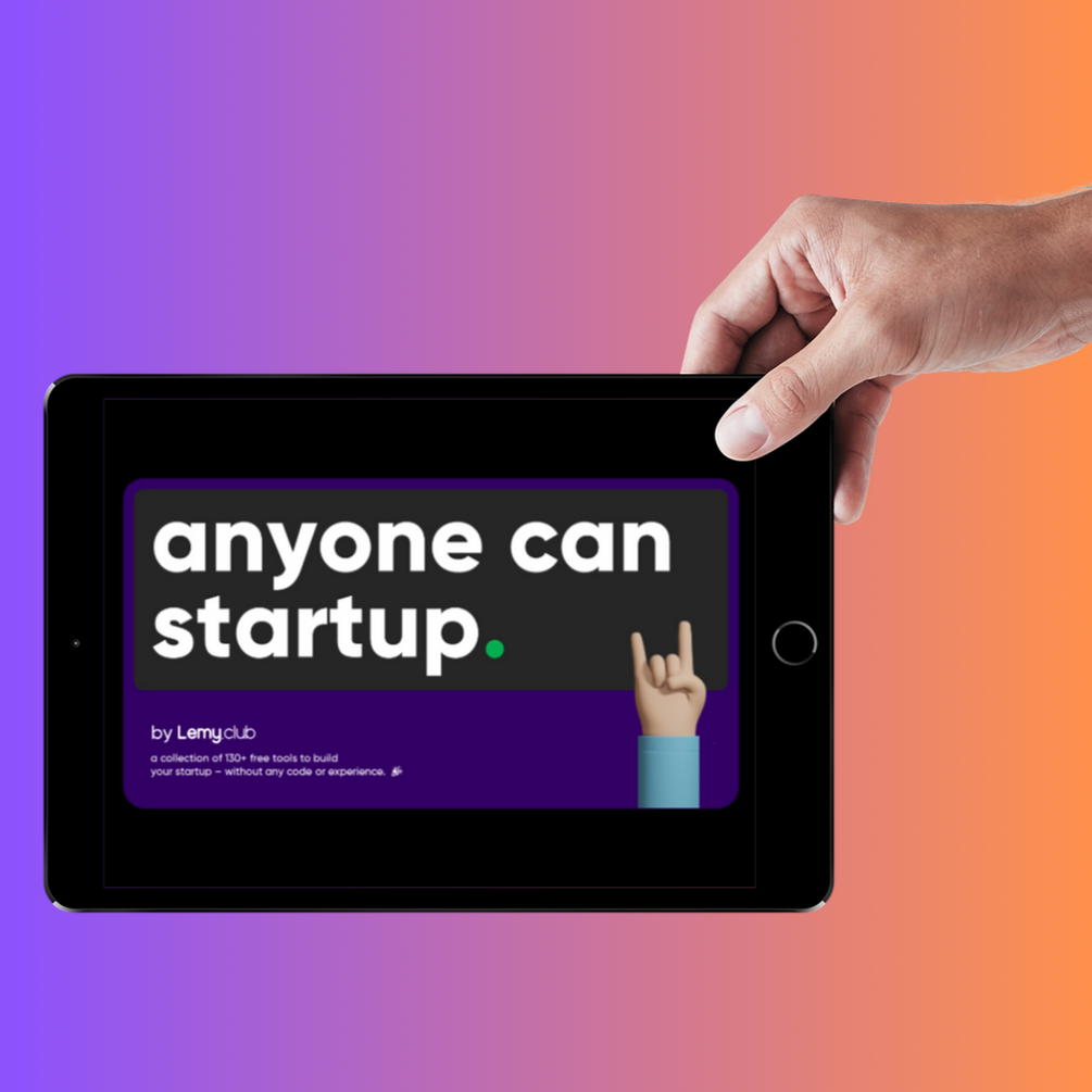 this changes with 'anyone can startup', a collection of 130+ free tools to build your startup – without any code or experience. 🎉